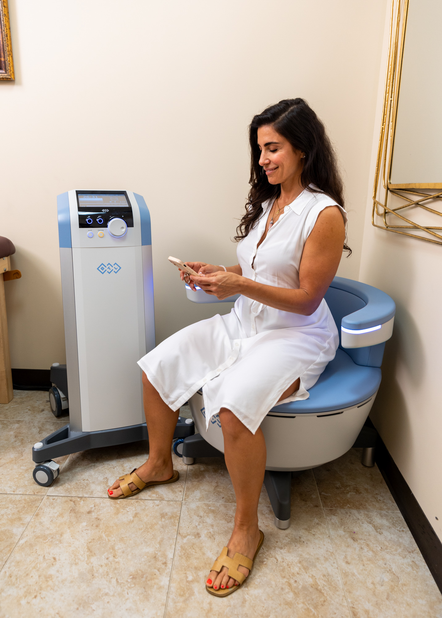 Say goodbye to embarrassing leaks and bathroom anxiety. Emsella® uses breakthrough HIFEM technology to strengthen your pelvic floor muscles — all while you remain fully clothed. Each 30-minute session delivers thousands of supramaximal pelvic contractions, equivalent to 11,000 Kegels.